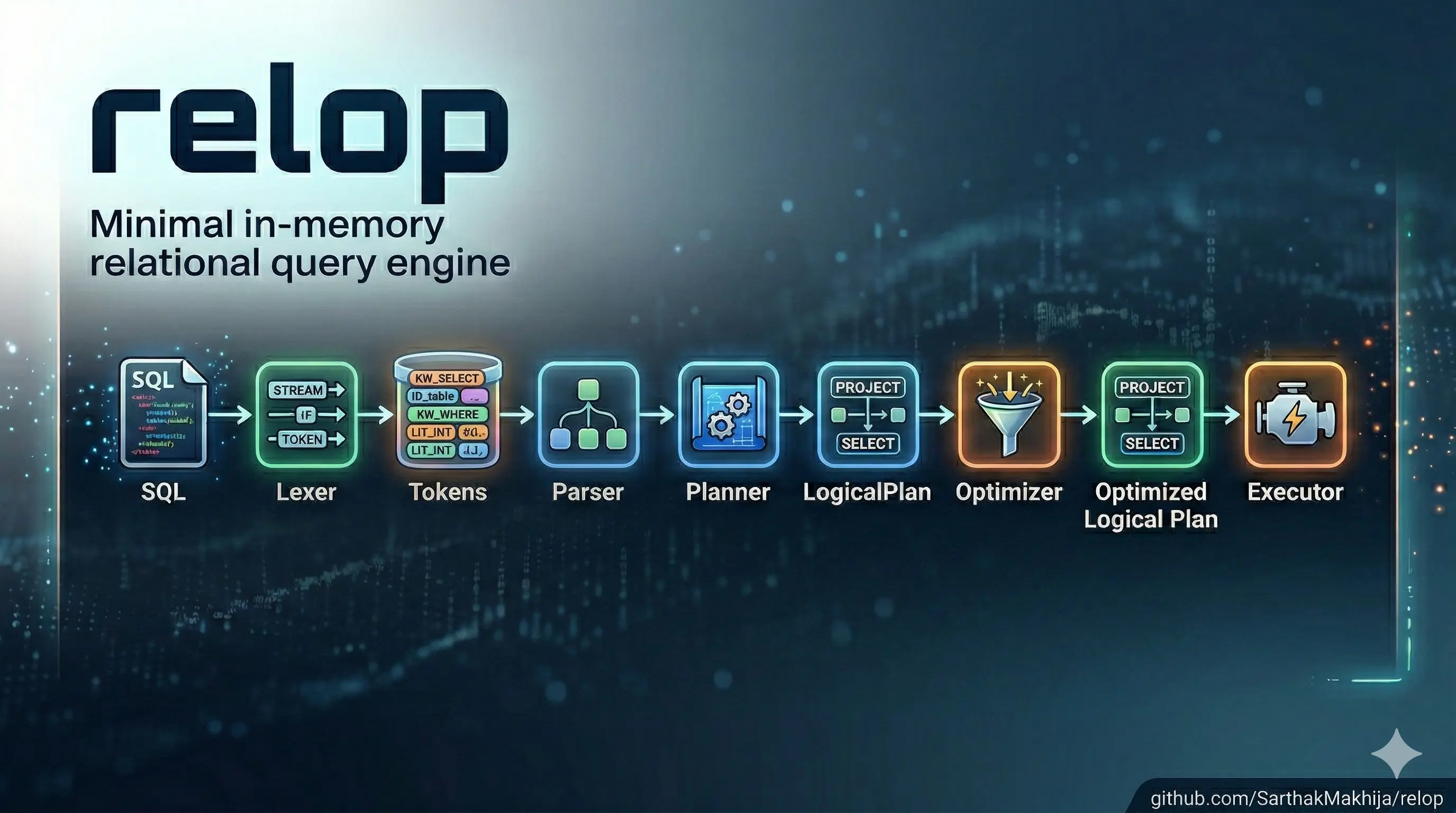 To make this exploration concrete, we will use Relop: a minimal, handwritten relational operator engine in Rust designed for learning and architectural transparency.